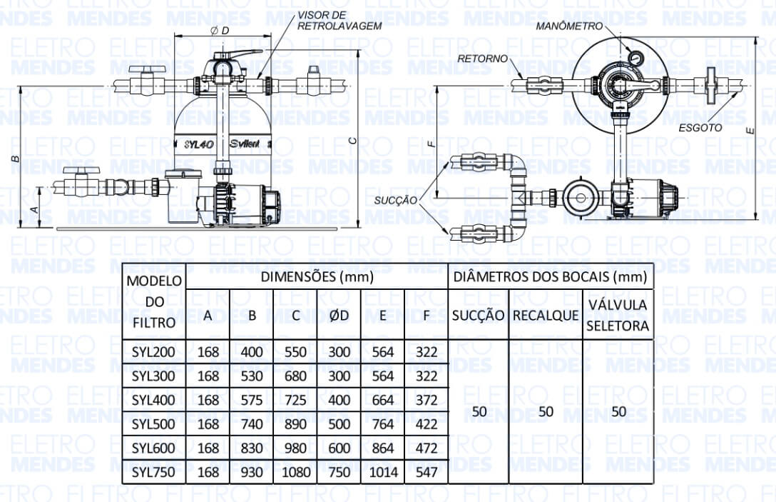 É recomendado o uso em conjunto com as bombas Syllent com pré filtro de 1/4cv, 1/3cv, 1/2cv, 3/4cv, 1cv ou 1,5cv.